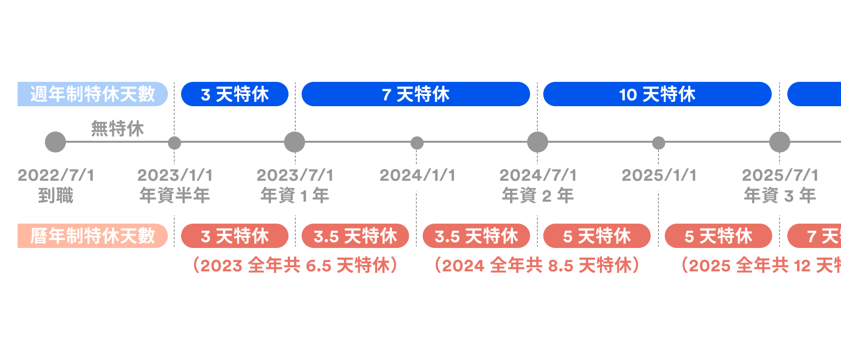 - 工作 1 年以上,未滿 2 年者,在 1 到 2 年間有 7 日特休。